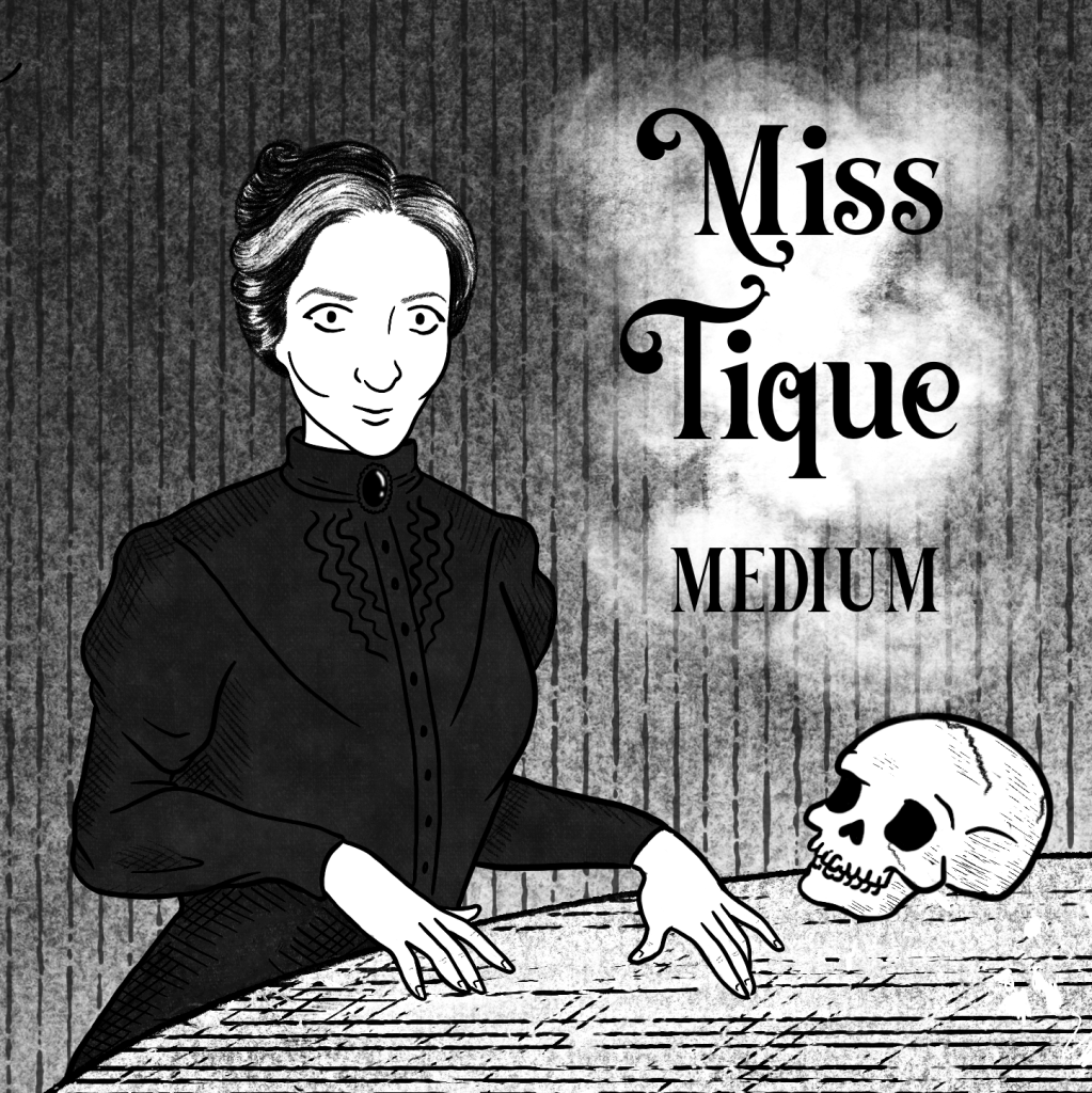 Since we’re welcoming all the spirits from behind the veil tonight, let’s also welcome Miss Tique, the medium who will introduce us to some techniques and tricks used by different people at the height of the spiritualism movement when beliefs often met with showbusiness.