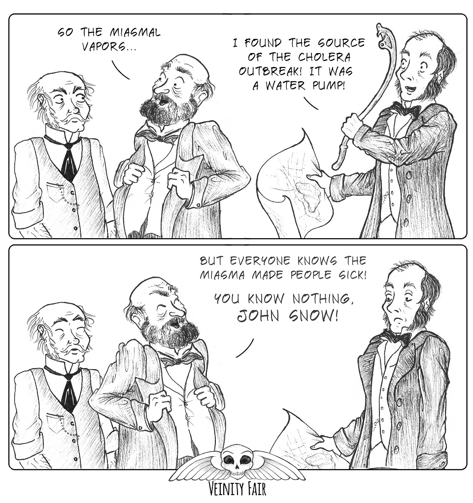 John Snow was an English physician, 👨⚕️ best known for finding the source of a cholera outbreak in Soho,1854. By putting all known cholera cases on a map, he found the source of all troubles – a contaminated water pump. 💦 Why was it such a big deal? This discovery not only led to shutting down the pump, but also worked in favor of the budding germ theory of disease. 🦠🦠🦠 Even though Snow himself didn’t know that at the time, he contributed to the birth of epidemiology. 🔬
